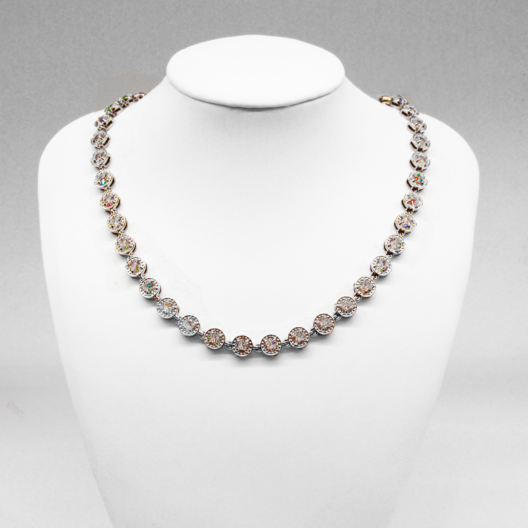Raffinata collana con zirconi brillanti, perfetta per aggiungere un tocco di lusso e eleganza ad ogni outfit. Ideale per occasioni speciali!